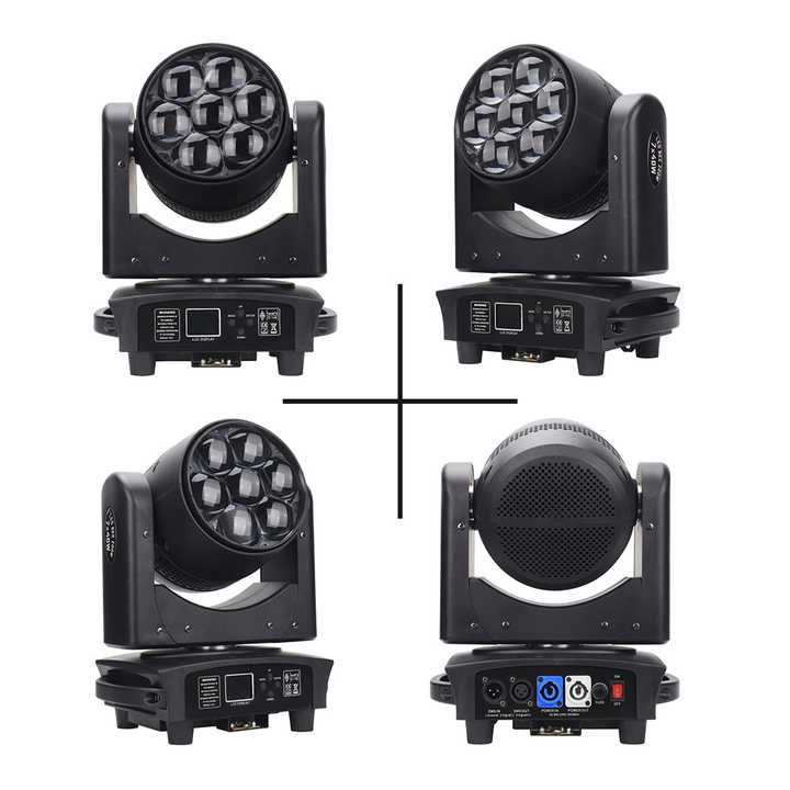 مصباح رأس متحرك بتقنية LED RGBW بقوة 7 × 40 واط، على شكل عين النحلة مع خاصية التكبير/التصغير
